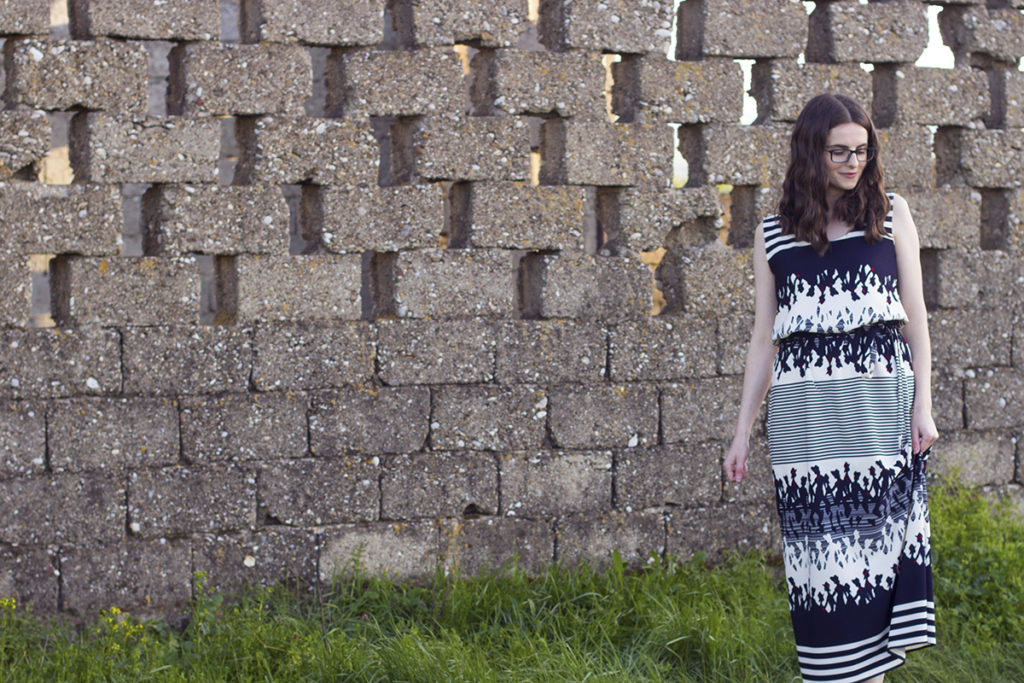 I was never into dresses before, my everyday out routine was wearing jeans and a shirt. Since I started sewing, I kind of began liking them. On last year’s summer, I made this maxi dress based on a free t-shirt pattern I found online.