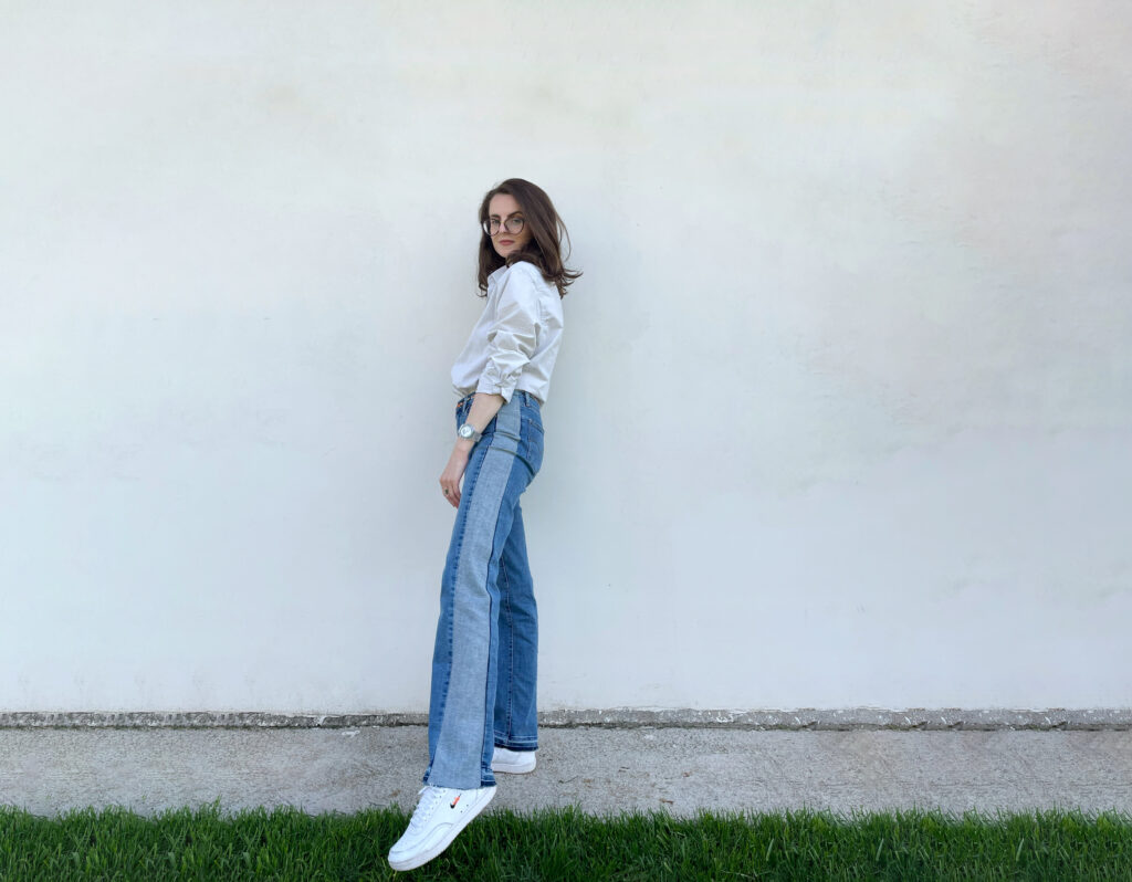 So, while being Instagram and Pinterest inspired, I turned my once favorite skinny jeans into wide-leg comfortable ones using side denim panels.